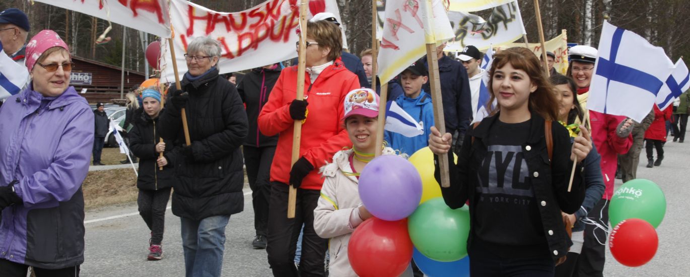 Kaiken kansan vappumarssilla on tunnelmaa.